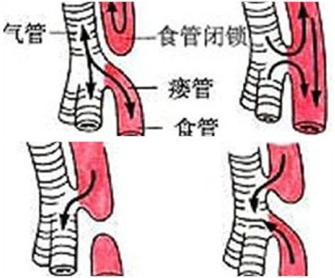 4、呼吸道感染:食管畸形可出现呼吸急促、喘憋、发绀等。如肺部有感染,则缺氧更明显,严重者可突发窒息。纵隔受压时,可发生移位,心脏受压时,心肺功能障碍可同时出现。
